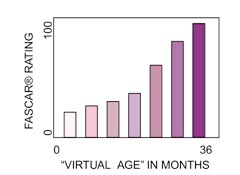 The "virtual age" of the brake fluid is determined by these factors and FASCAR® technology can measure their effects on brake fluid. As an example, a vehicle may have only 12,000 miles, but due to the thermal effects on the brake fluid it may have a "virtual age" to that of brake fluid with 30,000 or more miles. This condition has been demonstrated on high performance vehicles that are repeatedly subjected to high amounts of heat. FASCAR™ can measure these effects, as well as others, in a simple visual test.